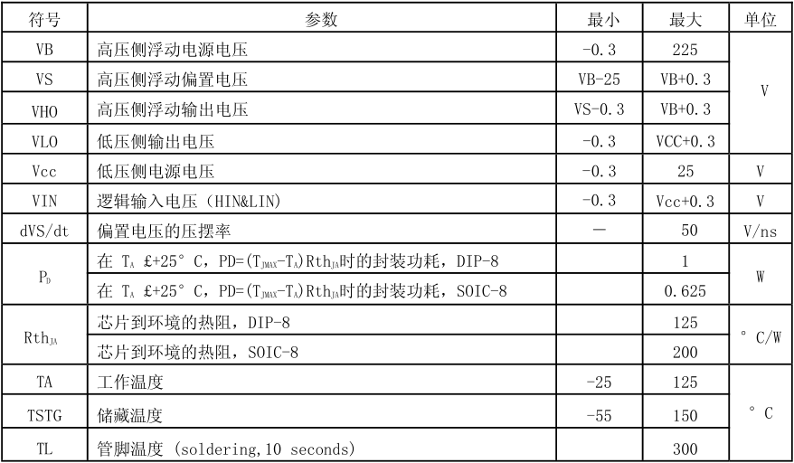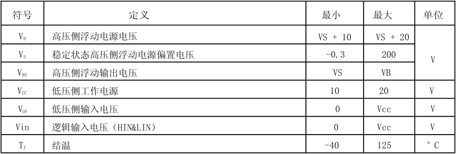 半橋驅動芯片工作范圍: