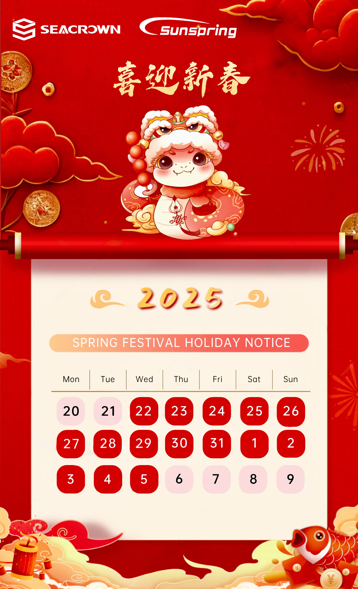 信冠公司的春節假期是2025年1月22日至2月5日