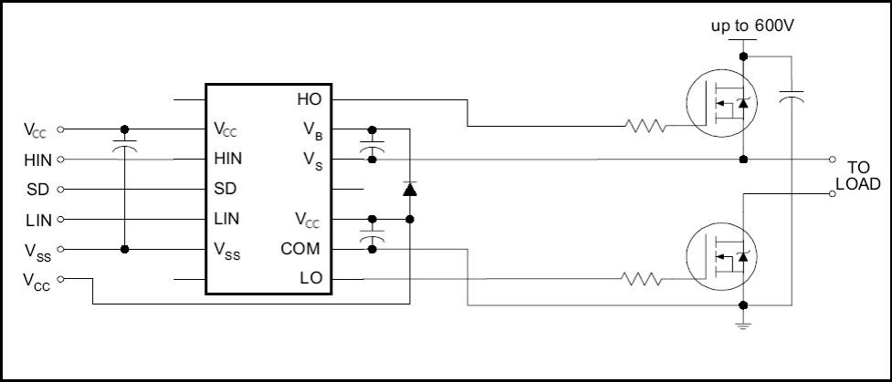 •主要特點(diǎn):浮動(dòng)通道設(shè)計(jì)用于引導(dǎo)操作;完全工作到+600V;容忍負(fù)瞬態(tài)電壓v /dt免疫;柵極驅(qū)動(dòng)供電范圍從10到20V;兩個(gè)通道都有欠壓鎖定;3.3V邏輯兼容;3.3V到20V的獨(dú)立邏輯供電范圍;邏輯與電源接地+5V偏移