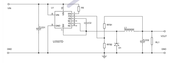 •產(chǎn)品描述:U3507D是一個高壓降壓開關(guān)穩(wěn)壓器內(nèi)置MOSFET。它集成了一個高側(cè)、高電壓、功率MOSFET,通常電流限制為10A(IPK)。輸入范圍適應(yīng)各種降壓應(yīng)用,使其成為汽車,工業(yè)和照明應(yīng)用的理想選擇。遲滯電壓模式控制采用非常快的響應(yīng)。UNIU專有的反饋控制方案最大限度地減少了所需外部組件的數(shù)量。開關(guān)頻率為150KHz,允許元件尺寸小。熱停機和短路保護(hù)(SCP)提供可靠和容錯的操作。低靜態(tài)電流允許U3507D用于電池供電的應(yīng)用。U3507D采用DFN5*6-10封裝,帶外露襯墊。