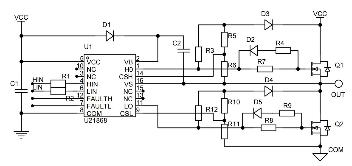 U21868是一款高壓半橋柵極驅(qū)動(dòng)芯片,設(shè)計(jì)用于高壓、高速功率MOSFET和IGBT。具有獨(dú)立的高側(cè)和低側(cè)參考輸出通道。U21868的邏輯輸入電平兼容低至3.3V的CMOS或LSTTL邏輯輸出電平。內(nèi)部集成了高、低側(cè)欠壓鎖定電路,高、低側(cè)過(guò)流保護(hù)電路,輸出具有大電流脈沖能力,輸出電流能力可達(dá)4A。U21868其浮動(dòng)通道可用于驅(qū)動(dòng)高壓側(cè)N溝道功率MOSFET和IGBT,浮地通道工作電壓最高可達(dá)600V。