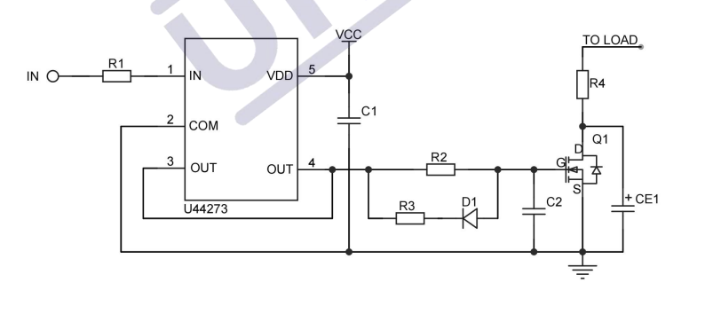 U44273單通道、高速、低側柵極驅動器件能夠有效驅動MOSFET和IGBT功率開關。邏輯輸入與標準CMOS或LSTTL輸出兼容,低至3.3V邏輯。為容性負載提供峰值拉/充電電流脈沖,同時提供軌對軌驅動動態能力和短傳播延遲。U44273設計用于在5V至20V的寬VDD范圍和40°C至140°C的寬溫度范圍內工作。VDD引腳上的內部欠壓鎖定(UVLO)電路在VDD工作范圍外保持輸出低。
